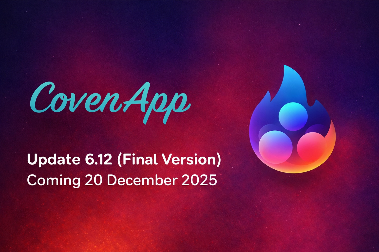 Thank you for being part of the Coven.CovenApp – Update 6.12 (Final Update of 2025) Our team has officially completed Update 6.12, the final update of 2025. With Update 6.12, we are temporarily disabling Reels (WitchTok), as this update introduces major structural and community-wide changes across the Coven ecosystem. What’s coming with Update 6.12 📅 Release Date: 30 December 2025 This update brings several powerful new features and improvements: 🛠️ Support Ticket System: Users will now be able to receive direct support exclusively through CovenMedia for: ➡️ Discord Server issues ➡️ Coven+ subscriptions ➡️ Mobile Applications This ensures faster, more organized, and centralized support. 🎁 New Gift Emojis & CovenCoins Integration:Introduction of new Gift Emojis: ➡️ Users will be able to purchase Gifts and send them to other users using their CovenCoins 💬 CovenChat v2.0 – A Complete Rebuild: CovenChat returns as version 2.0, following the discontinuation of v1.0 due to technical limitations and incomplete implementation. New features include: ➡️ Message Reactions ➡️ Group Creator ➡️ Send videos and images (not only images anymore) ➡️ Ability to delete individual messages instead of deleting entire conversations 🛠️ WitchTok (Reels) Status: As mentioned above, WitchTok will be disabled with Update 6.12. 🔮 It is scheduled to return by May 2026, fully redesigned and improved. This update marks a major milestone for CovenApp and lays the foundation for a stronger, more stable, and feature-rich platform going into 2026. Note: CovenAI is scheduled to become available in early January, alongside the launch of Update 7. More details will be revealed soon — stay tuned. Thank you for being part of the Coven. 🖤0 Σχόλια 0 Κοινοποίησε 89 Προβολές9
